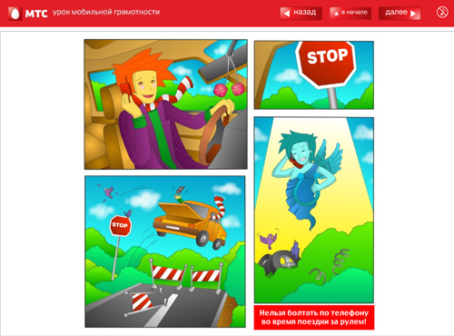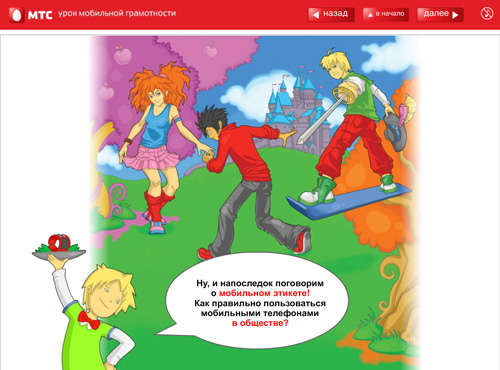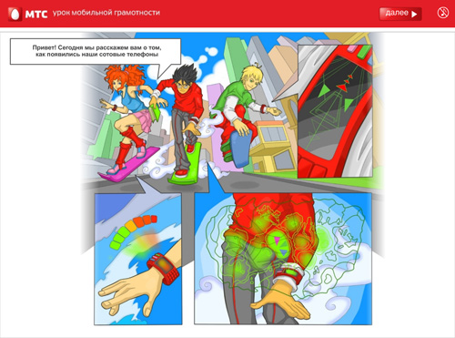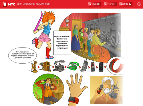 «Такилииначе» разработали для МТС презентацию в стиле «Наруто»Трое ведущих дадут детям уроки мобильной грамотностиКреативная студия "Такилииначе" разработала новый дизайн и программу для социального проекта компании МТС (СЗФО) "Урок мобильной грамотности для детей". Это специально разработанная интерактивная презентация с флэш-играми, конкурсами и викторинами, позволяющими детям быть активными участниками процесса обучения. Презентация разработана в стилистике известного мультсериала Наруто, с той же динамикой движений и прорисовкой главных героев. Интерактивный урок дают детям трое героев-ведущих: девочка-заводила - душа компании; стильный и собранный отличник, у которого готов ответ на любой вопрос, спортивный парень-хорошист, который говорит мало и только по делу, но всегда готов прийти на помощь. Три ярких персонажа, разработанные как примеры для подражания, вобрали в себя те качества, которыми в душе стремится обладать каждый ребенок. Презентация разделена на 3 основные части. Все они являются интерактивными - то есть дети могут реагировать на задания и получать обратную связь на свои действия. Первая часть знакомит нас с историей возникновения связи, объясняет, почему связь называется "сотовой". Наглядно показана эволюция телефона - от телефонной станции до сегодняшнего iPhone. Юных участников ждут не только комиксы, но и игры "Гелиограф" и "Азбука Морзе".