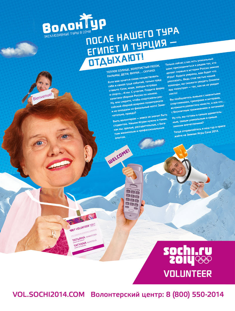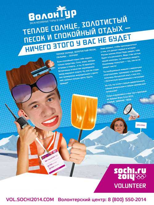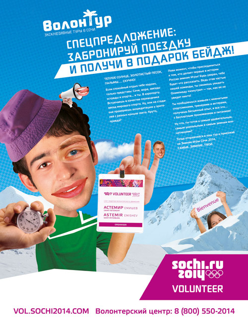 «Сочи 2014» позвал в «ВолонТур»Ключевым каналом коммуникации оргкомитет планирует сделать ИнтернетВ преддверии старта отбора 25 000 волонтеров на Игры в Сочи Оргкомитет «Сочи 2014» запустил рекламно-информационную кампанию «ВолонТур», направленную на привлечение желающих стать волонтером. «Лицом» и «голосом» кампании стали участники волонтерской сборной «Сочи 2014». Именно они рассказывают своим сверстникам, что ждет волонтеров на Играх. Ключевым каналом коммуникации станет Интернет: помимо размещения баннеров, запланированы вирусные проекты, активности в социальных сетях и другие методы продвижения. Кроме того, в 14 регионах страны появится наружная реклама с коллажами «идеальных» кандидатов в волонтеры Олимпийских и Паралимпийских Игр на фоне Олимпийских стадионов. Кампания ориентирована на людей с активной жизненной позицией и прежде всего молодых ребят, которым к моменту открытия Игр в Сочи исполнится 18 лет. До конца 2012 года на портал vol.sochi2014.com планируется привлечь до 200 тысяч человек. Набор волонтеров будет осуществляться через 26 волонтерских центров, созданных на базе отобранных по конкурсу учебных заведений России. Концепция кампании также отображает идею бренда Sochi2014.ru, в основу которого легла идея сопричастности каждого жителя страны Играм в Сочи, отражение дуальности русского характера, сочетания несочетаемого. Коммуникация играет на единстве контрастов и противоположностей. «Холодное и теплое» — впервые зимняя Олимпиада проходит на традиционном летнем курорте. Выдуманное туристическое агентство «ВолонТур» предлагает хорошо знакомый всем россиянам курорт - Сочи в качестве места для работы. Рекламная кампания будет реализована Оргкомитетом «Сочи 2014», 26 региональными волонтерскими центрами «Сочи 2014», а также партнерами Игр в Сочи и общественными организациями. Рекламные материалы будут адаптированы в зависимости от места проведения кампании. Так, для регионов, в которых преобладает мусульманское население, девушки-волонтеры на билбордах будут одеты в платья, а не в купальники. Кампания пройдет при поддержке администраций городов, где расположены волонтерские центры «Сочи 2014». Дисплейную рекламу в сети Интернет разместят на наиболее посещаемых площадках и тематических сайтах для обеспечения максимального охвата целевой аудитории. Для наиболее сильного эмоционально вовлечения будет проведен ряд специальных проектов. В том числе внимание молодых людей будут привлекать посредством акций в социальных сетях. В ходе кампании планируется активно использовать интерактивные, вирусные и игровые механизмы вовлечения аудитории. «Почему волонтеры должны поехать в Сочи? Да потому, что такой шанс в жизни выпадает один раз! - говорит Дмитрий Чернышенко, президент Оргкомитета «Сочи 2014». - И потому, что, приехав туда, они не просто получат красивую форму волонтера, шанс увидеть спортивных кумиров и поболеть за наших. Лучшие из лучших, отобранные по конкурсу, будут сопричастны великому историческому событию, о котором они будут помнить всю жизнь». |