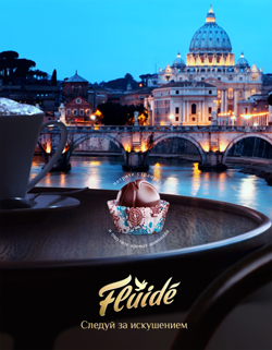 Перед агентством стояла задача заявить о лонче шоколадных конфет «Fluide». Создатели рекламной кампании хотели бы расскзать о том, что «Fluide» – это новые конфеты премиального сегмента, европейского уровня качества, а их рецептуры и форма не имеют аналогов на рынке.