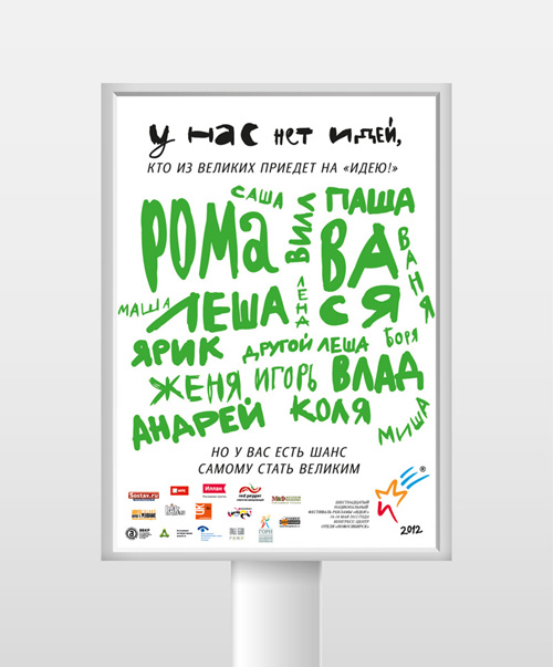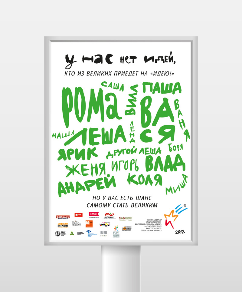 Открылся обновленный сайт национального фестиваля рекламы «Идея!»Концепция фирменного стиля фестиваля в этом году разработана рекламной группой «Иллан»Сегодня заработал обновлённый сайт 16-го национального фестиваля рекламы «Идея!». О том, как создавалась концепция фирменного стиля и рекламной кампании фестиваля в этом году, рассказывают ее разработчики - рекламная группа «Иллан»: «В прошлом году мы получили возможность создать новый фирменный стиль и рекламную кампанию для шестнадцатого фестиваля «Идея!». Мы придумывали множество ходов и вариантов, но всегда оставалось ощущение, что не хватает какой-то ключевой сверхидеи, иногда даже казалось, что идей нет вообще. Так почему бы честно в этом не признаться? У нас нет идей, как создаются гениальные идеи. Но есть «Идея!», чтобы их оценить. Уникальные, но выстроенные по общему принципу каламбуры были адаптированы под каждый из носителей. Использование жесткой языковой константы позволило сделать фирменный стиль максимально свободным – в нем гармонично уживаются графика, паттерны, фото и каллиграфия». Как отмечают организаторы фестиваля, регистрация на сайте уже открыта, крайний срок подачи работ – 27 апреля. Фестиваль пройдет 16-18 мая 2012 года в Конгресс-центрe отеля «Новосибирск». Дирекция фестиваля обращает внимание на то, что в программе появились конкурсы профессионального мастерства в видео, печатной и радиорекламе, и конкурс «Нейминг», а также расширились номинации в конкурсе «Рекламные сувениры и бизнес-подарки» и «BTL-услуги». Фестиваль по-прежнему поддерживают ведущие профессиональные ассоциации: Ассоциация коммуникативных агентств России (АКАР), Ассоциация брендинговых компаний России (АБКР), Российская ассоциация маркетинговых услуг (РАМУ), Ассоциация интерактивных агентств (АИА). Состав творческой группы: Владимир Федосеев |