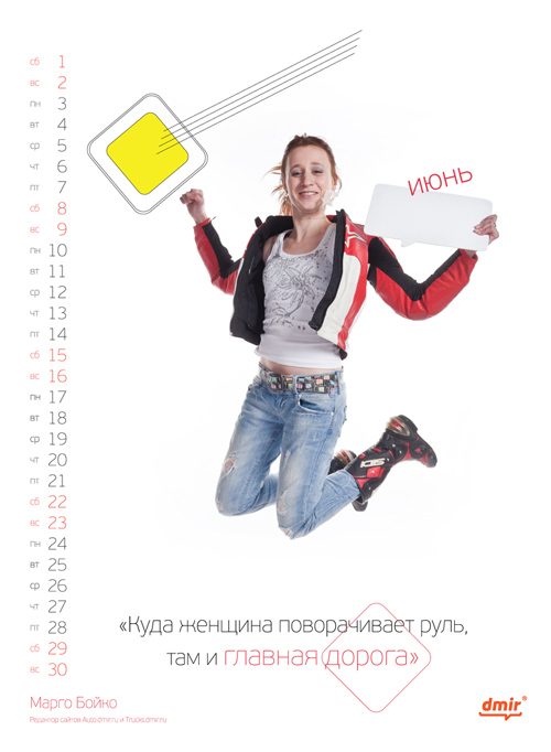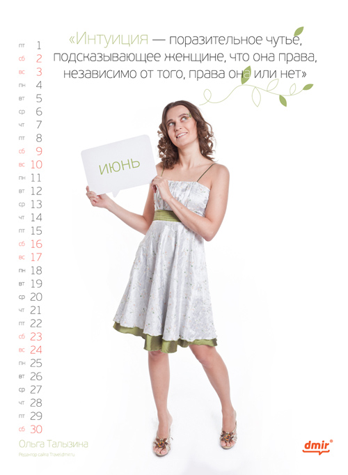 Сделан календарь in-house - силами отдела маркетинга компании «Деловой Мир Онлайн». Состав творческой группы: |