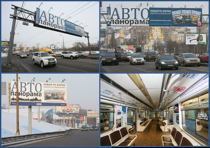 Рекламная кампания призвана познакомить читателя с новой обложкой журнала и подчеркнуть "панорамность" контента издания. Для решения этой задачи в наружной рекламе были выбраны крупноформатные поверхности - арки над основными дорожными магистралями, а также реклама в метро, в которой использована концепция "вагона-журнала": вагоны поездов на представляют собой дайджесты свежих номеров журнала "Автопанорама".