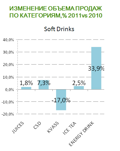 В Российской Федерации за прошедший год резко увеличились продажи энергетических напитков. По данным исследовательской компании Nielsen рост данного показателя составил 33,9%. Red Bull –в самых узнаваемых О том, что энергетики завоевывают все большую популярность среди россиян, свидетельствовало исследование Romir, проведенное в сентябре 2011 года. Во всероссийском опросе тогда приняли участие 1500 жителей городов России с населением выше 100 тысяч человек в возрасте от 18 до 60 лет и старше. Выяснилось, что регулярно употребляют энергетики почти четверть горожан – 24%, причем, мужчин среди них больше, чем женщин. Для 7% такие напитки является повседневным продуктом, который приобретается 3-4 раза в неделю или каждый день. Еще около четверти (24%) - покупают «заряжающие» напитки чаще, чем раз в месяц. По данным исследования, в 2011 году доля домохозяйств, приобретающих энергетики, на 18,2% превысила аналогичный показатель 2010 года. Кроме того, потребители стали чаще покупать энергетики в новых торговых форматах (гипер-, супер- и mini маркеты), чем в обычных магазинах и палатках – доля таких покупок в 2011 году выросла на 20,4%. Среди наиболее узнаваемых марок респонденты назвали (в порядке убывания) Red Bull, Burn, Adrenalin, Bullit и Powerade. При этом большинство опрошенных, по их словам, используют энергетики не для того, чтобы больше успевать, а «чтобы проснуться», «освежиться», «доставить себе удовольствие» и «потому что нравится вкус напитка». Энергетики - под запрет Тем временем, на государственном уровне решается вопрос о том, чтобы ввести запрет на продажу безалкогольных энергетических напитков несовершеннолетним, а также изъять данный напиток из розничной продажи на территории детских, образовательных, медицинских заведений, физкультурно-оздоровительных и спортивных сооружений, на всех видах общественного транспорта и в организациях культуры. Госдума также предложила ввести акцизы для энергетических напитков. Напомним, что 21 июня прошлого года в Госдуму был внесен законопроект «Об ограничениях розничной продажи и потребления (распития) безалкогольных энергетических напитков», автором которого является депутат Виктор Звагельский. По его словам, резкий рост употребления молодежью энергетических напитков в последнее время вызывает серьезные опасения. «Ассортимент таких напитков постоянно расширятся, большинство «энергетиков» создаются со вкусовыми характеристиками, присущими традиционным безалкогольным прохладительным напиткам и выпускаются в красочной привлекательной потребительской упаковке, содержащей молодежную символику, чем увеличивают свою аудиторию потребителей. Наряду с этим сведения о наличии тонизирующих веществ в энергетических напитках производители намеренно размещают на упаковке плохо читаемым мелким шрифтом, не привлекающим внимания. Это создает ложный имидж данной продукции, как близкой к обычным прохладительным напиткам и абсолютно безвредной», - отметил он. В прошлом году на рынке были запущены ряд новинок, а также проходила широкая рекламная поддержка уже существующих брендов. В частности, в декабре 2011 года стартовала рекламная кампания в поддержку нового бренда – TORNADO Energy, созданная брендинговым агентством CORE Advertising. ![]() Источник: Nielsen |