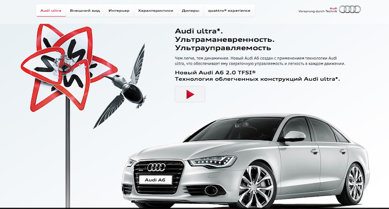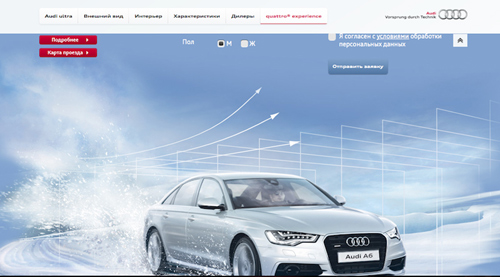 Audi A6 позаимствовала свой дизайн у колибриАгентство Red Keds создало промосайт в поддержку рекламной кампании Audi HummingbirdПеред командой Red Keds стояла задача: рассказать о преимуществах нового Audi A6 и при этом постараться сохранить тональность, которую задает появившийся в январе на YouTube ролик. Как рассказали разработчики, при создании сайта использовалась технология рельефной компьютерной графики parallax, благодаря которой он получился многослойным и включает в себя шесть разделов: Audi ultra, Внешний вид, Интерьер, Характеристики, Дилеры, quattro experience. В разделе quattro experience у посетителей появляется возможность познакомиться с модельным рядом и изучить маневренность автомобилей в разных условиях. Для участия в программе Audi quattro camp необходимо просто заполнить анкету, позволяющую пройти тест-драйв автомобилей Audi, обучение экстремальной езде и тренировки на специально оборудованных трассах в Подмосковье и свободный доступ к лыжным трассам для участников программы. «У нас получилось создать лаконичный сайт, адаптированный под все платформы, который полностью соответствует гайдлайнам Audi. Сайт доносит до пользователя ключевые особенности нового Audi A6 и преимущества технологии легковесных конструкций Audi ultra», - комментирует продюсер проекта Илья Рыжков.