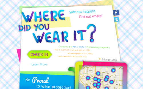 Центр по планированию семьи США создал презервативы с QR-кодом. В рамках Недели безопасного секса по колледжам штата Вашингтон было распространено 55 тысяч таких презервативов. Перед сексом пользователи могут зайти на сайт wheredidyouwearit.com и «зачекиниться».