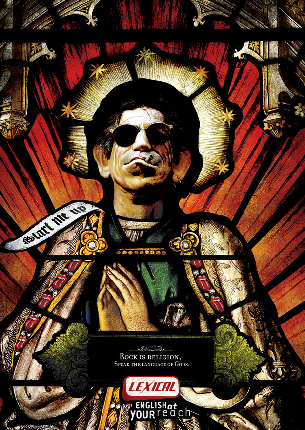 Школа английского языка в Бразилии тоже решила использовать метод провозглашения чего-либо религией. Она провозгласила религией рок-музыку, чтобы мотивировать людей учить английский. Рекламное агентство Yeah! Brazil сделало три принта с Джоном Ленноном, Элвисом Пресли и Китом Ричардсом из «The Rolling Stone», на которых они изображены с нимбами в католическом стиле. Слоганом кампании стала фраза: «Рок – это религия. Говори на языке богов».
