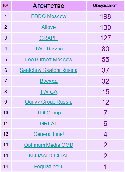 Самые «облайканные»TOoBEeDOo и Sostav.ru подготовили рейтинг популярности главных игроков рекламного рынка на страницах FacebookСовременные компании считают присутствие в социальных сетях необходимым условием для собственного позиционирования и общения с потребителями и СМИ. Считается, что активность в соцмедиа является одним из ключевых показателей инновационности и развитости той или иной бизнес-структуры. Не являются исключением и рекламные агентства, которые широко представлены, в первую очередь, в Facebook. Чтобы посчитать, какие из игроков российского рекламного рынка являются наиболее популярными в крупнейшей соцсети планеты, мы и составили данный рейтинг совместно с агентством TOoBEeDOo. За основу был взят рейтинг креативности АКАР, распределяющий игроков по следующим категориям - Реклама, Интерактив, Бренд-дизайн, Маркетинговые услуги, Медиа. Кроме того, эксперты опирались на два главных параметра популярности страниц - «мне нравится» и «обсуждают это». Реклама