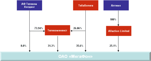 В ближайшее время может быть закрыта сделка между Altimo и «МегаФоном», которая кардинально изменит структуру акционерного капитала оператора. Сегодня СМИ раскрыли подробности «сделки года». Сейчас Altimo, управляющей телекоммуникационными активами «Альфа-групп», принадлежит 25,1% «МегаФона». По информации «Коммерсанта», кипрская Megafon Investments выкупит 14,4% акций оператора у Altimo, «АФ-Групп» Алишера Усманова приобретет оставшиеся 10,7%, а также 26,1% «Телекоминвеста» – у TeliaSonera. В результате миллиардер консолидирует 100% петербургского холдинга «Телекоминвест», через который TeliaSonera и «АФ-Групп» контролируют 31,3% «МегаФона». Напрямую TeliaSonera владеет 35,6% акций, Усманов – 8%. 10,7% Altimo оцениваются в 1,6 миллиарда долларов, а доля TeliaSonera в «Телекоминвесте» – в 1,45 миллиарда долларов. После сделки структура Усманова может получить 50% «МегаФона», Megafon Investments – 14,4%, TeliaSonera – 35,6%. Всего за свою долю Altimo получит примерно 3,8 миллиарда долларов. Как пишут «Ведомости», позже «МегаФон» погасит выкупленные у Altimo акции и впервые выплатит дивиденды. Издание оценивает доли TeliaSonera и Усманова следующим образом: скандинавы получат 58,4% уставного капитала и 47,5% голосующих акций, миллиардер – 41,6% и 52,5% соответственно. На прошлой неделе «Мегафон» привлек 4,5 миллиарда долларов, в том числе бридж-кредит на 2 миллиарда от Citibank, BNP Paribas и Barclays Bank. Кроме того, кредит предоставили Сбербанк и Газпромбанк. Сейчас 43,77% «Мегафона» косвенно и напрямую контролирует TeliaSonera, 31,3% принадлежит АФ «Телеком Холдинг» Алишера Усманова, 25,1% – Allaction Limited (входит в консорциум «Альфа-групп» и контролируется Altimo). В начале месяца сообщалось, что Усманов собирается выкупить долю Altimo за 5 миллиардов долларов. В качестве другого варианта называли выкуп акций самим «МегаФоном». Ранее Altimo предлагали расстаться с долей в «МегаФоне». Три года назад банкир Михаил Фридман договаривался о создании этой компании, и ему посоветовали продать акции оператора. Это было условием властей для одобрения слияния российского «ВымпелКома» и телеком-активов миллиардера Нагиба Савириса. Altimo владеет 24,998% голосующих акций в Vimpelcom ltd. Правительство не устраивало, что компании принадлежат крупные доли сразу в двух компаниях «большой тройки». Полученные средства Altimo пригодятся для конвертации префов Vimpelcom Ltd. в обыкновенные бумаги. На все это компании понадобится примерно 1,3 миллиарда долларов. Действующая структура «МегаФона»