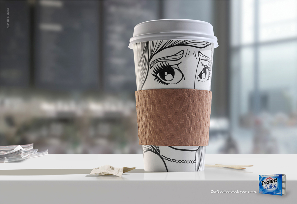 JWT/NY сделало принты для жвачки Trident WhiteТема безупречной улыбки обыгралась по-новомуКреативное агентство JWT/NY сделало принты для жвачки Trident White. На них идея безупречной улыбки обыгрывается с помощью картонных колец, которые обычно надевают на чашки кофе на вынос. Слоган кампании: «Не позволяйте кофе блокировать вашу улыбку».