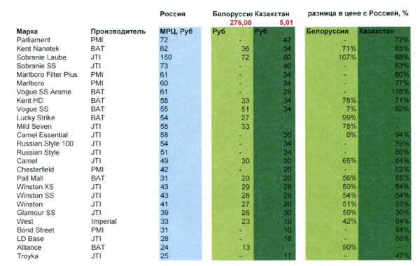 Цены на известные марки в странах Таможенного союза