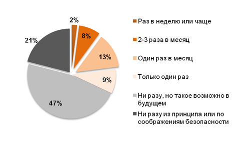 Около половины респондентов (47%) заявляют, что не разу не воспользовались подобной услугой, но не исключают этого в будущем.