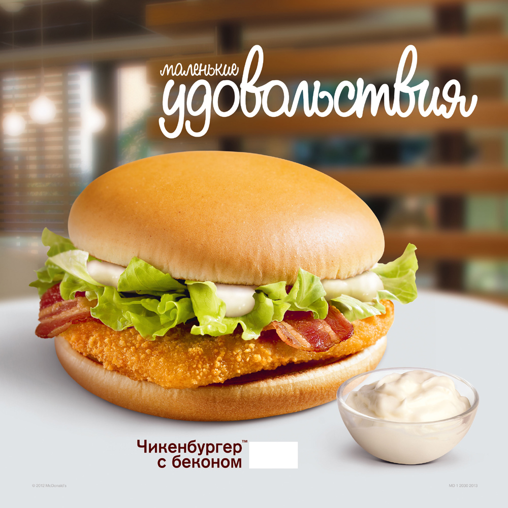 DDB Russia развеял чары чудесного пираВ новом ролике для «Макдональдса»В мае «Макдоналдс» проводит рекламную кампанию по поддержке сандвича Чикенбургер с беконом. Агентство DDB Russia разработало серию рекламных материалов. Слоган кампании: «Тот же «Макдоналдс», только пикантнее». Основное сообщение: привлекательный вкус за очень небольшие деньги. Для ТВ-ролика была адаптирована канадская история об удивительной доступности одного из продуктов «Макдоналдс». В данном случае это оказался Чикенбургер, к которому прибавился бекон. Героиня ролика очарована заботливостью героя, устроившего чудесный пир. Но чары рассеиваются, когда она узнаёт истинную цену его усилий. Драма снималась в Киеве с участием местных актёров. Также в рамках кампании были разработаны макеты для наружной рекламы и материалы для оформления ресторанов «Макдоналдс». Чикенбургер с беконом стал вторым продуктом (после Чиабатта Биф – «Тот же Макдоналдс, только итальянистей») в линейке «Маленькие удовольствия», запущенной «Макдоналдс Россия» в 2012 году.