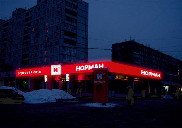 «Восход» создал фирменный стиль для сети алкомаркетовКрасный цвет приобрел винный оттенокВ «Восходе» выполнили редизайн логотипа и разработали фирменный стиль для сети алкомаркетов «Норман», которая представлена в Санкт-Петербурге, Перми, Екатеринбурге. «Норман» - это современные магазины самообслуживания, специализирующиеся на продаже алкогольных напитков в среднем ценовом сегменте. Прежний логотип представлял собой шрифтовое начертание и не имел знака, основной акцент был поставлен на выделении двух букв «Н». Поэтому, именно эту букву дизайнеры взяли за основу и вынесли в качестве знака. В дополнение к ней была добавлена вторая буква - «О», стилизованная под знак градуса. Красный цвет, хоть и сохранился, но перестал быть откровенно алым и приобрел более насыщенный винный оттенок. В рамках фирменного стиля были разработаны: вывески, варианты оформления фасадов и витрин торговых точек, ценники, визитки, бейджи.
