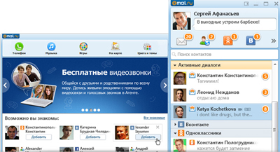 Также из плюсов: интеграция с соцсетями, поддержка скинов и цветовых схем, возможность переходить с нового интерфейса на традиционный. Что касается оформления, то первостепенные функции, наконец, разнесены с дополнительными, над чем поработали не только специалисты Mail.ru, но и команда приглашенных дизайнеров. Для обкатки прототипов коммуникатора была проведена дополнительная серия тестов в фокус-группах. Игорь Ермаков, зам техдиректора Mail.ru Group: «при разработке нового агента мы старались не пичкать его очередной серией «фишек», к тому же не всегда нужных, нам было важней понять, чего хотят пользователи».