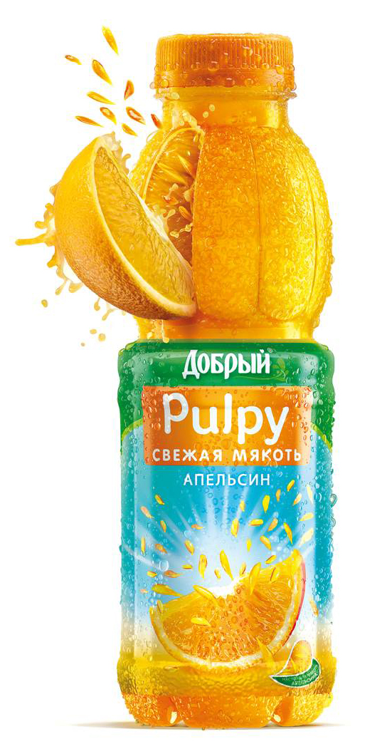 «Добрый» не избежал влияния Minute MaidВ новинке, вышедшей под брендом, от «Доброго» осталось только название Российский производитель соков «Мултон», принадлежащий Coca-Cola, представил новый сокосодержащий напиток Pulpy (от англ. Pulp – мякоть). Причем, продукт выпускается под брендом «Добрый». В дизайне нового продукта легко угадывается атрибутика торговой марки Minute Maid Pulpy, которая была запущена в 2005 году и на сегодняшний день представлена в ряде азиатских стран. На российском рынке категория прохладительных сокосодержащих напитков развита слабо, но имеет большой потенциал роста, считают в компании. Именно этим обусловлено появление новинки, которая по планам «Мултон» призвана стать лидером и развить эту нишу, чтобы удовлетворить растущие потребности потребителей. Напиток состоит из артезианской питьевой воды, апельсинового сока и свежей мякоти апельсина, что и обусловливает название продукта. Pulpy выпускается в прозрачной пластиковой бутылке емкостью 0,45 л. Дизайн бутылки имеет характерную особенность – верхняя часть бутылки напоминает корочку апельсина. Сделано это для усиления ассоциации содержимого бутылки с натуральным фруктом. Этикетка продукта обозначает присутствие мякоти в напитке и передает ощущение свежести через голубой фон, сообщают в компании. При этом невозможно не заметить, что в новинке от Minute Maid Pulpy атрибутов гораздо больше, чем от «Доброго». При этом основная линейка соков под одноименной маркой остается неизменной. Напомним, что адаптацию к семейству Minute Maid некогда пережил бренд «Моя Семья».