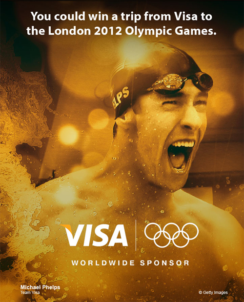 Компания VISA является спонсором каждых Олимпийских игр вот уже на протяжении 25 лет. В поддержку Летних Олимпийских игр-2012 был снят ролик, в первом кадре которого появляется российская прыгунья с шестом Елена Исинбаева. Слоган кампании: «Мы с тобой».