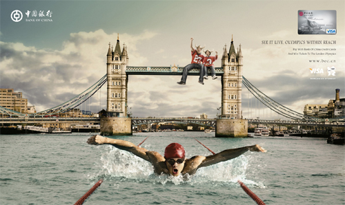 Реклама кредитных карт Китайского банка (Bank of China), сделанная агентством Mccann, Beijing. Слоган: «Увидь это вживую».