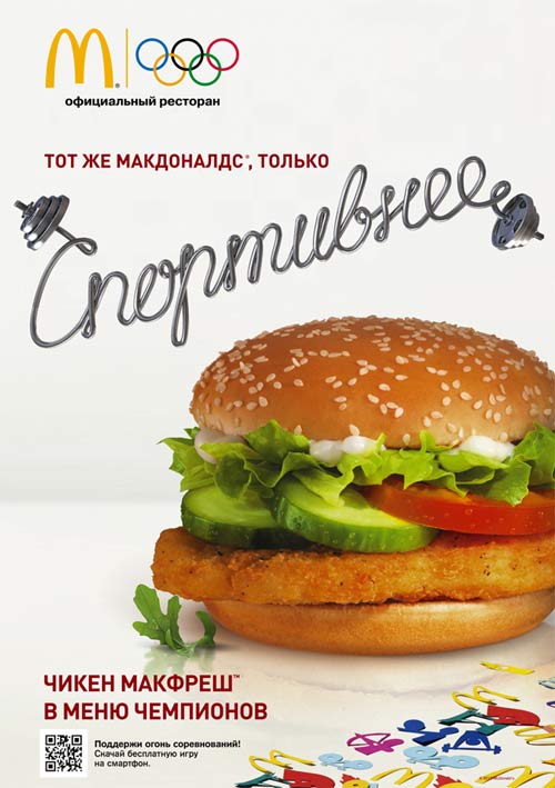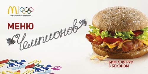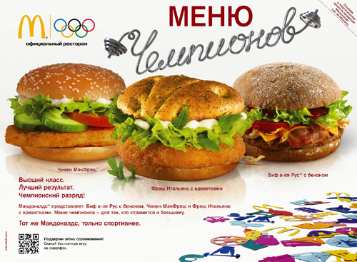 «Макдональдс»: «Мы все делаем Игры» Фирменный стиль: неудачный логотип Официальный ресторан Летней Олимпиады-2012 собирается принять 1.75 миллионов заказов Официальным рестораном Летних Олимпийских игр в Лондоне станет «Макдональдс». «Макдоналдс» уже много лет является партнером глобальных спортивных событий – Чемпионатов Европы и мира по футболу, Олимпийских Игр. В 1968 года компания впервые самолетом отправила гамбургеры американским спортсменам в Гренобль (Франция), которые пожаловались, что скучают по американской еде. Так началась история сотрудничества «золотых арок» и олимпийских колец. «Поддержка «большого спорта» является неотъемлемой частью той большой и системной работы, которую проводит «Макдоналдс» для популяризации активного и здорового образа жизни. Для нашей компании важно, чтобы физкультура и спорт были неотъемлемой частью жизни не только профессиональных спортсменов, но и многих людей во всем мире. Мы гордимся возможностью предоставлять нашу продукцию спортсменам и гостям игр из разных стран мира», - говорят в «Макдональдс». В «Макдональдс предполагает», что в период проведения Олимпийских игр в Лондоне в ресторанах будет сделано около 1.75 миллионов заказов. К это Олимпиаде было разработано специальное сбалансированное меню. В него входят: Биг Мак, Чикен МакНаггетс, картофель фри, специальное меню завтраков с овсяными кашами, салаты, роллы, Хэппи Мил, новый фруктовый напиток Fruitizz, а также чай и кофе. Агентство DDB Russia и «Макдональдс» разработали «олимпийскую» кампанию для «Меню Чемпионов», включающую в себя наружную рекламу и адаптированный видеоролик. «Будучи официальным рестораном Олимпийских игр, «Макдоналдс» гордится возможностью предоставлять нашу продукцию спортсменам и гостям игр из разных стран мира. Мы рады, что вносим свой вклад в организацию Олимпийских игр, - говорит президент и главный исполнительный директор McDonald’s Дон Томпсон. – Как компания, постоянно заботящаяся о благополучии детей, мы продолжим нашу коммуникацию о важности сбалансированного питания и активного образа жизни, в том числе и через наше партнерство с Олимпийскими играми». К Летним Олимпийским играм Лондоне компания предоставили своим сотрудникам шанс стать делегатом Олимпийской команды Чемпионов «Макдоналдс». В олимпийских ресторанах «Макдоналдс» будут работать более 2000 лучших из лучших – как из страны-хозяйки Олимпиады, так и из более 40 стран, где работают рестораны «Макдоналдс», в том числе из России. Один из российских делегатов – Марина Малых, директор ресторана «Макдоналдс» в Сочи – получит бесценный опыт по организации и проведению международного мероприятия такого уровня, который в полной мере сможет реализовать дома, на зимней Олимпиаде 2014. «Макдоналдс» в России активно поддерживает программы OlympicChampionCrewprogram (Олимпийская программа для работников «Макдоналдс») и McDonald’sChampionsofPlay (Олимпийская программа «Дети – Чемпионы «Макдоналдс»), благодаря которым работники и маленькие посетители со своими родителями получат возможность, выпадающую раз в жизни, почувствовать дух Олимпиады и увидеть Олимпийские игры своими глазами. В России Макдоналдс традиционно поддерживает турнир «Золотая шайба», который дает возможность тысячам детей заниматься любимым видом спорта. Макдоналдс в России всегда участвует 