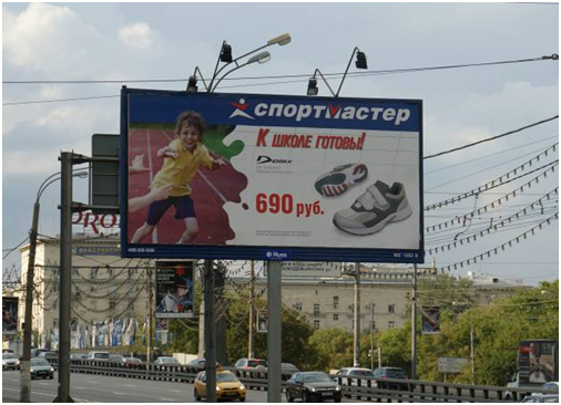 Кампания «Спортмастера» идет под традиционным в преддверии 1 сентября слоганом «К школе готовы!». Очень сбалансированный и информативный постер, четкое зонирование и размещенного в шапке логотипа. Выделенное с «воздухом» пространство под товар и цену, стилизованное под тетрадный лист, и часть, отданная под фотографию. Фотографии поддерживают слоган и создают настроение. Контраст между фотографией и правой частью достаточно резкий, но за счет изогнутых границ переход воспринимается достаточно плавно.