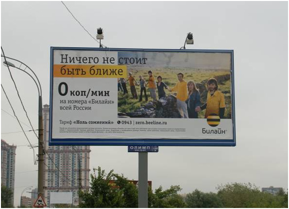 У Билайна фотография достаточно сложная для наружки и для соотнесения с предложением. При этом, логотип привязан к изображению, а не к сообщению, дистанцируясь от коммерческого предложения.