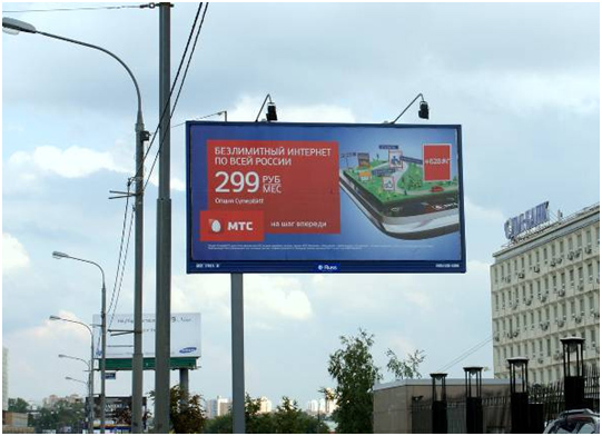 А МТС после мощного удара Николая Валуева в предыдущих кампаниях, использовал 3D-экран телефона с лайками и фотогрфиями для продвижения безлимитного интернета. Наложение информационных блоков красными плашками позволяет сделать постер более объемным и целостным. Изображение на телефоне достаточно мелкое. Эту часть информации можно будет детально рассмотреть в конце августа, застряв в пробках.