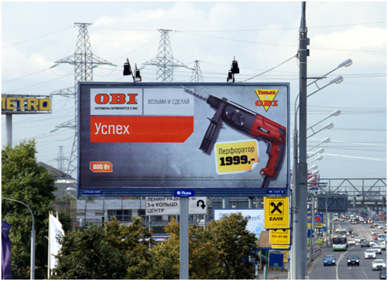 Более яркий визуальный акцент на цене в своих кампаниях делают OBI и Metro за счет цвета.