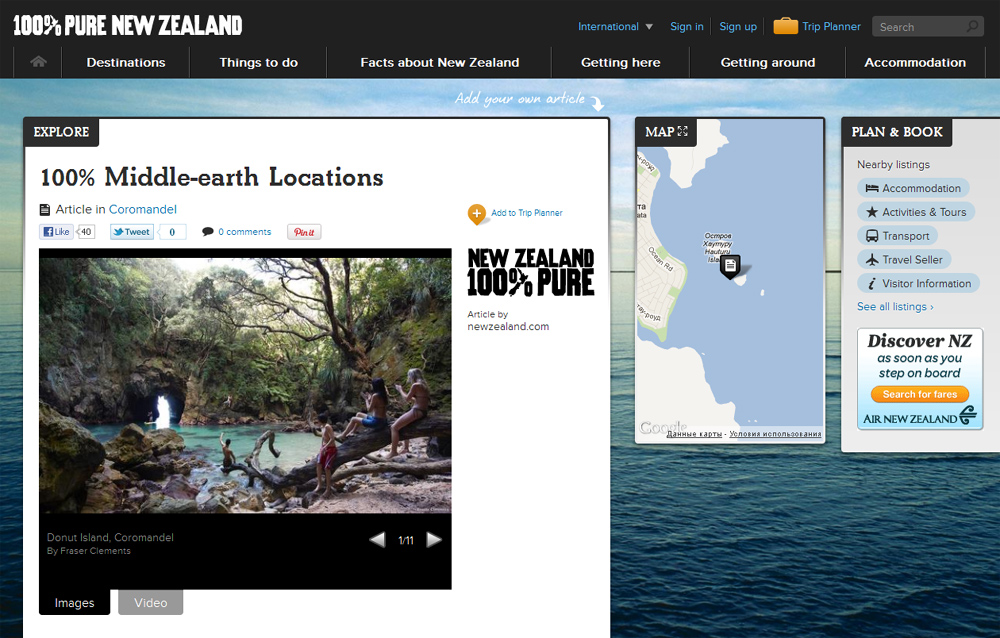 Новую Зеландию прорекламировали как СредиземьеОфициальная кампания, презентующая страну для туристов, перекликается с "Властелином колец" В Новой Зеландии запущен официальный рекламный ролик, презентующий страну для туристов в рамках кампании "Новая Зеландия. 100% чистота". Креаторы решили использовать за основу образ Средиземья - фэнтези-вселенной, созданный в легендарной книге Толкина "Властелин колец". "Получи свой собственный опыт в Средиземье, который будет долго держать тебя завороженным, - обращаются создатели к туристам. - Путешественник, твои мечты ждут тебя тут, в Новой Зеландии". Для тех, кто заинтересовался местами, в которых снят ролик, на официальном сайте проекте приведена подробная информациях о них. Средиземье - место действия основных произведений Толкина — «Властелин Колец», «Хоббит, или Туда и обратно», а также значительной части «Сильмариллиона». Подробности истории, населения и языков Средиземья были описаны Толкином в приложениях к «Властелину Колец», «Сильмариллионе» и изданной посмертно серии «История Средиземья».