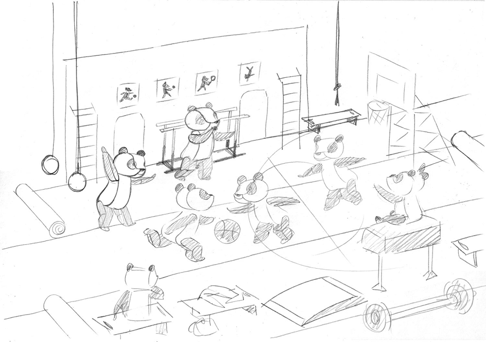 Третья сценка была посвящена спортзалу и вышеупомянутым пандам: