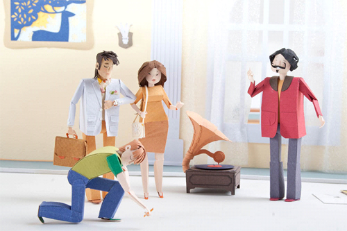 С такой печальной главной страницей мы сидели перед выездом на встречу с заказчиком и вдруг, нашего креативного директора осенило: «Эти плоские человечки на фоне бесчисленных ковров похожи на бумажные! Давайте сделаем настоящие сценки из папье-маше. Таким образом, мы не просто креативно преподнесем тривиальную тему покрытий, но и разбавим дизайн необычными персонажами, демонстрируя все преимущества Terkett», — взбодрился Григорий Коченов и тут же подготовил эскиз: