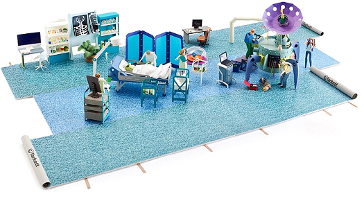 Вторая сценка иллюстрировала ситуацию в больнице и отражала особое свойство IQ покрытия, которое не проводит электричество и идеально подходит для медицинских учреждений:
