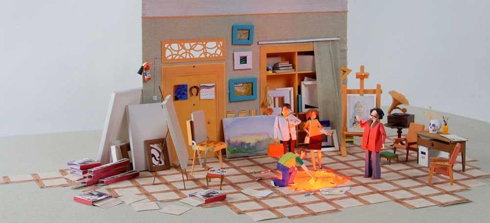 В четвертой сценке мы придумали самый интригующий сюжет, чтобы показать максимум возможностей дизайнерской плитки. Мы создали при помощи бумажной копии плитки оригинальный провал в полу — 3D эффект, которого действительно можно добиться, используя плитку из коллекции ART VINYL.