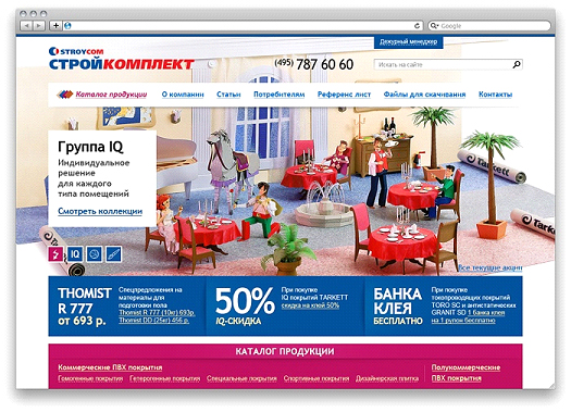 Перед креаторами стояла задача разработать сайт для компании, которая работает на рынке строительных и отделочных материалов с 1993 года, и реализует преимущественно напольные ПВХ-покрытия Tarkett. Как и многие разработчики, еще в самом начале создания дизайн-концепции креаторы допустили ошибку, о которой они рассказали Sostav.ru: