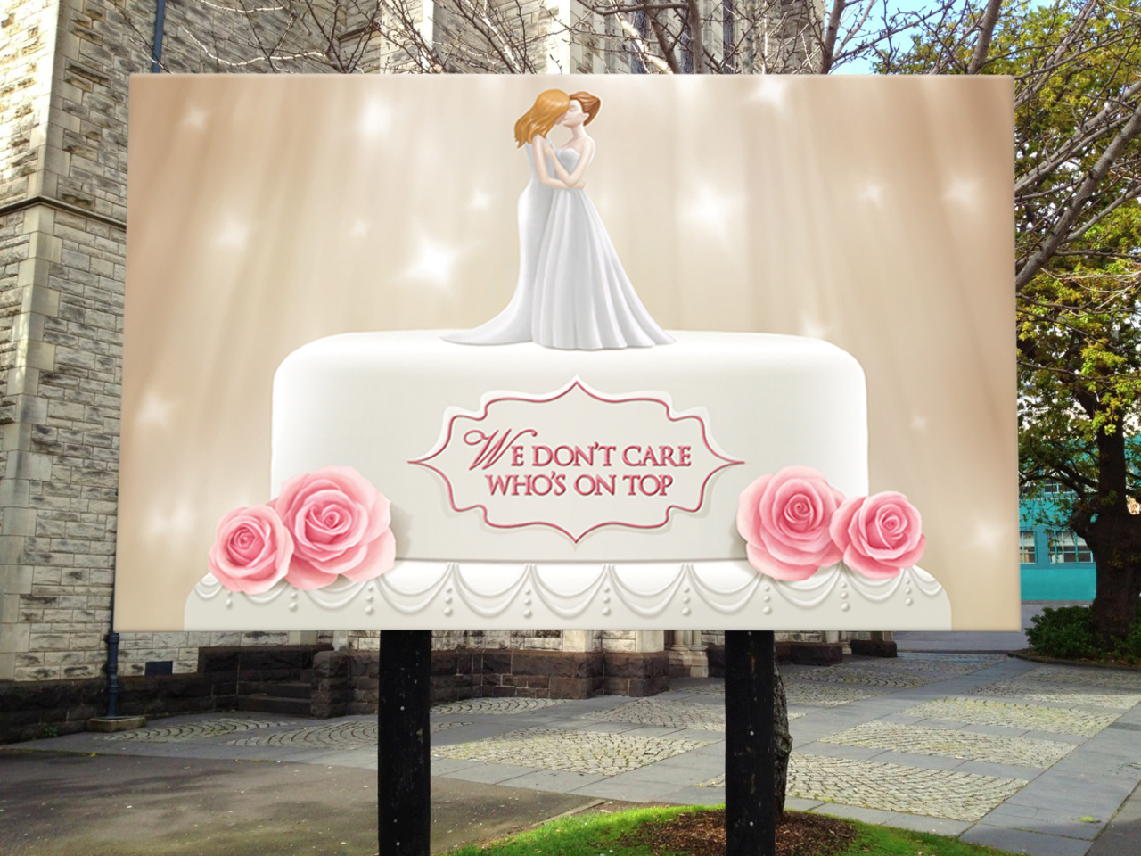 "Мы всегда пытались бороться с предрассудками и привести больше людей на фестиваль, один из самых важных в Португалии, - говорит креативный директор агентства Fuel Lisboa Марсело Лоурена (Marcelo Lourena). - Таким образом, в этом году мы создали фильм, раскрывающий все гей-клише, которые на фестивале Queer Lisboa не покажут". Фестиваль Queer Lisboa пройдет в Лиссабоне с 21 по 29 сентября уже третий раз. Queer Lisboa является единственным национальным фестивалем, показывающий фильмы о геях, лесбиянках, бисексуалах и трансексуалах. Организаторы ставят своей целью показать на мировой арене те фильмы, которые по определенным причинам могут выходить только в ограниченном прокате. Новозеландская церковь St Matthew in the City, давно известная своими скандальными рекламными кампаниями, разместила новую наружную рекламу, на которой был изображен торт и фигурки двух женщин в свадебных нарядах. На торте был написан слоган: "Нам все равно, кто сверху". Кампания разработана креативным агентством WhybinTBWATequila, Auckland.
