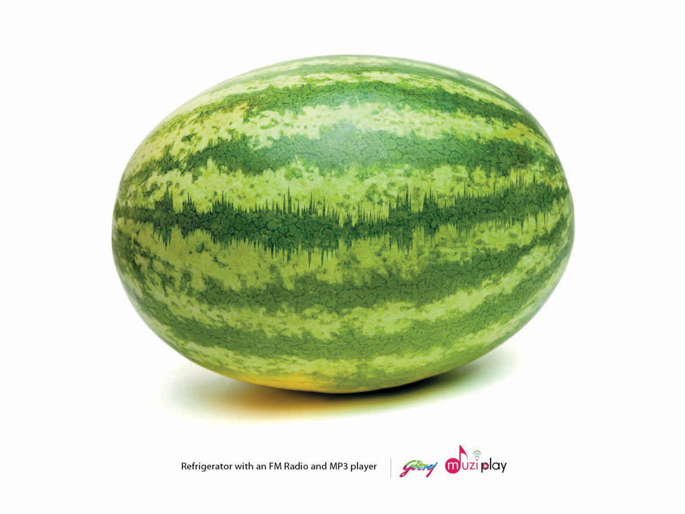 Продукты под влиянием музыкиJWT Mumbai создало рекламную кампанию холодильника с MP3-плеером Креативное агентство JWT, Mumbai разработало рекламную кампанию для индийского конгломерата Godrej, который выпускает холодильники Godrej со встроенным FM-радио MP3-плеером. Индийские креаторы изобразили на двух принтах, как продукты питания видоизменяются под влиянием музыки. Состав творческой группы: