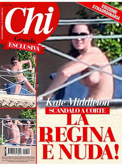 Таблоиды Берлускони опубликовали интимные фото Кейт МиддлтонСупруга принца Уильяма интересует европейскую прессу Итальянский журнал Chi опубликовал новые фотографии герцогини Кембриджской Кэтрин, супруги принца Уильяма. Ранее снимки полуобнаженной Кейт Миддлтон появились во французском издании Closer. Оба журнала выпускает группа Mondadori, принадлежащая бывшему итальянскому премьеру Сильвио Берлускони. Об этом сообщает BBC. Скандальные фотографии были сделаны на юге Франции, где молодожены отдыхали в шато. Публикация первых снимков возмутила британскую королевскую семью. Адвокаты планируют через суд запретить публикацию фотографий во Франции, продажу уже напечатанных экземпляров журнала, а также возбудить уголовное дело против неизвестного фотографа. Если суд удовлетворит иск, то тираж Closer будет немедленно изъят из продажи. Однако решение французского суда не распространяется на иностранные издания, в том числе итальянский Chi. Отметим, что британские газеты проигнорировали скандальные снимки. Daily Mail сообщила, что на прошлой неделе ей предлагали купить эти фото, но она отказалась. Sun, которая разместила фото голого принца Гарри, заявила, что ни одна уважающая себя газета «не притронется к таким снимкам». Closer не находит данные фотографии унизительными. «Они демонстрируют молодую пару на отдыхе, красивую, влюбленную и современную, в ее обычной жизни», – говорится в обращении издания.