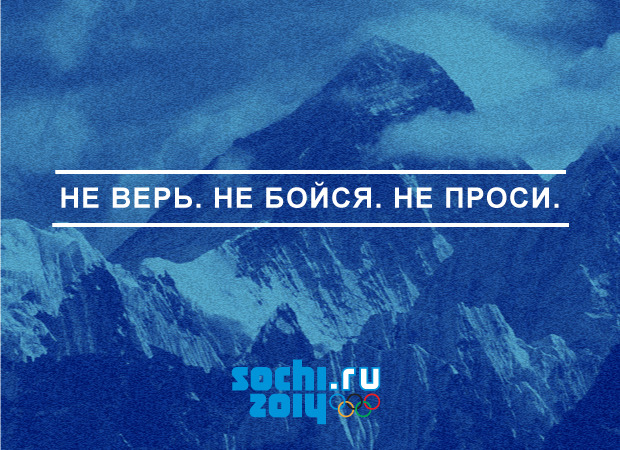 В любом случае, Олимпиада сама расставит все на свои места, многое еще будет зависеть от того, как воспримут слоган и бренд Сочи-2014 иностранные гости и участники Олимпиады. А пока мы продолжаем наслаждаться новыми и новыми вариантами слогана: "Пилите. Шура. Пилите.", "Тройка. Семерка. Туз.", "ВАЗ-2106. Черный. Недорого" и другими.