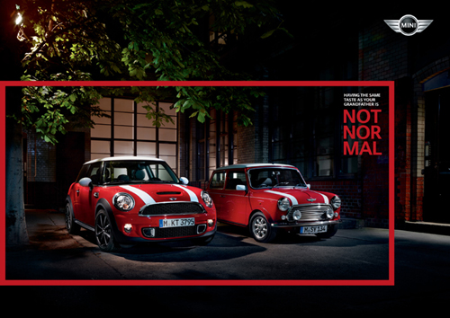 «MINI в большей степени, чем любой другой автомобильный бренд, демонстрирует сильную эмоциональную и личную связь между водителем, автомобилем и брендом, — объясняет основную идею руководитель отдела коммуникационной стратегии, рекламы и общественного маркетинга MINI Филипп Томссен (Philipp Thomssen). — Эта связь основывается на общепризнанном факте: бренд MINI всегда был бунтарем в автомобильном мире, он эмоционален и индивидуален. Его неординарность придает MINI особый шарм в глазах многочисленных поклонников марки. Нестандартное мировосприятие составляет концепцию кампании и суть слогана Not Normal».