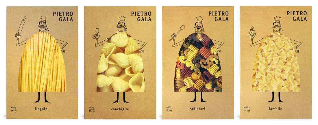Лицом марки макарон стал нарисованный поварВ агентстве Fresh chicken разработали дизайн упаковки для новой марки - Pietro Gala Макаронные изделия «Pietro Gala» производятся в Калининграде, по итальянской технологии, и с использованием только оригинального оборудования. Ранее компания специализировалась на производстве и поставке мучных изделий для сегмента HoReCa, а в 2012 году решила начать розничную продажу макаронных изделий в гастрономических магазинах. В агентстве Fresh chicken был придуман образ продукции и разработан дизайн упаковки. Шеф-повар по имени Петро Гала, придуманный в агентстве Fresh chicken, является лицом бренда и упаковки.