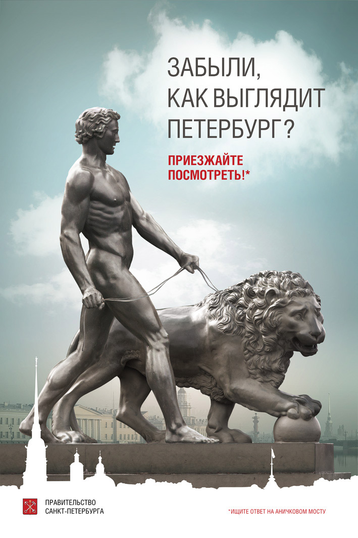 Great приглашает в ПетербургРекламная кампания направлена на тех, кто забыл, как выглядит город Этой осенью Комитет по внешним связям Санкт-Петербурга выступил с инициативой к администрациям городов России об обмене наружной рекламой с целью привлечения туристов. В рамках этого проекта в агентстве Great разработали плакат и ролик для наружных электронных дисплеев. «Если твои воспоминания о Петербурге стали не очень внятными… значит, пора приехать и освежить их!», - считают в агентстве. Проект осуществлён по заказу Правительства Санкт-Петербурга.