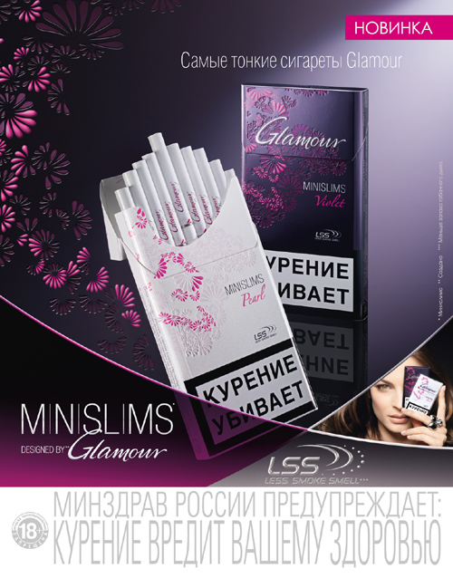 JTI Россия выводит на рынок сигареты Glamour Minislims диаметром 4,7 миллиметра с технологией LSS (Less Smoke Smell), которая способствует уменьшению запаха табачного дыма. Новинка продолжает развитие нового сегмента табачных изделий – микроформата, который появился в России в апреле 2012 года, когда JTI выпустила на рынок Winston XS micro – самые тонкие сигареты в мире.