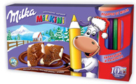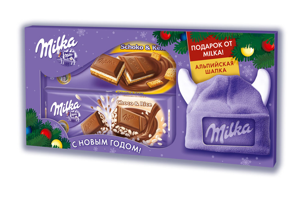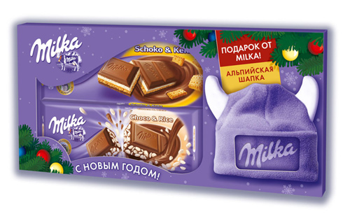 В канун нового 2013 года бренд Milka выпустил обновленный набор новогодних подарков. В ассортименте останутся праздничные наборы с шоколадными фигурами дедов морозов, зайцев и шишечек; а также появятся новые, яркие и эксклюзивные сезонные продукты.
