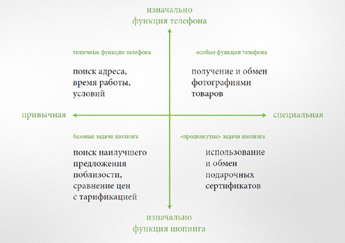 Ключевое заблуждение в том, что шопинг — это только покупка, сегодня ставит категорию мобильного шопинга в «невидимую зону» для многих производителей товаров и услуг. Но стоит посмотреть на шопинг как на процесс, который включает в себя множество активностей: поиск товара, сравнение цен и продуктов, получение рекомендаций и отзывов, поиск информации, где купить, сама по себе покупка и даже постпродажное обслуживание, и тогда возникает множество возможностей использовать мобильные устройства, как полноценный маркетинговый канал.