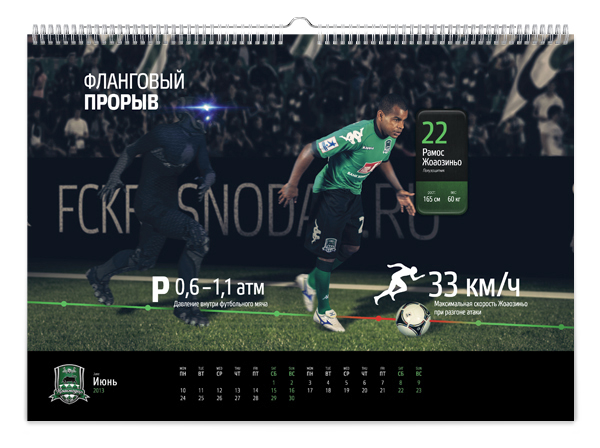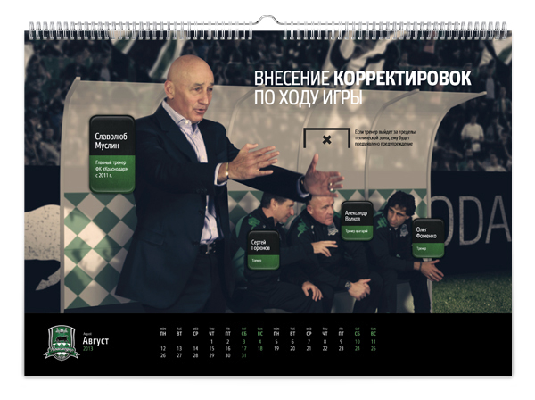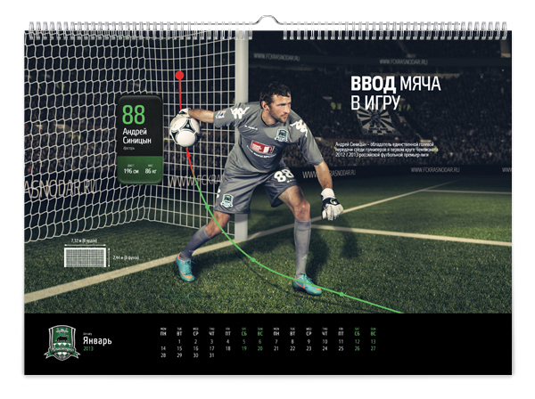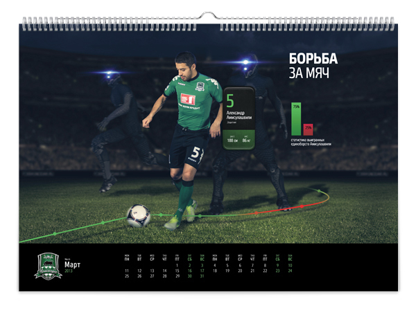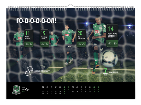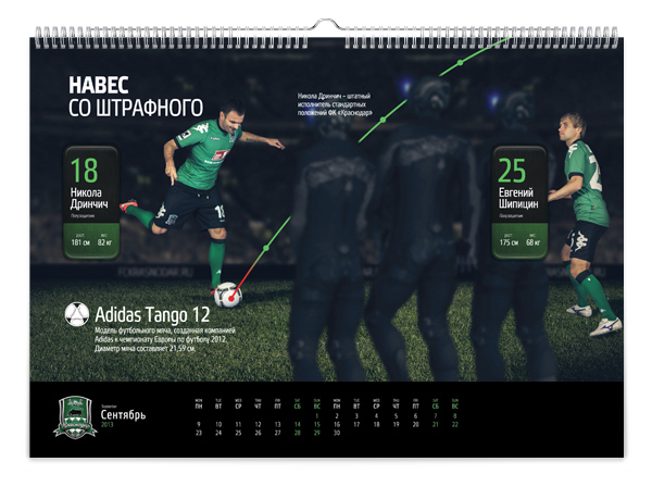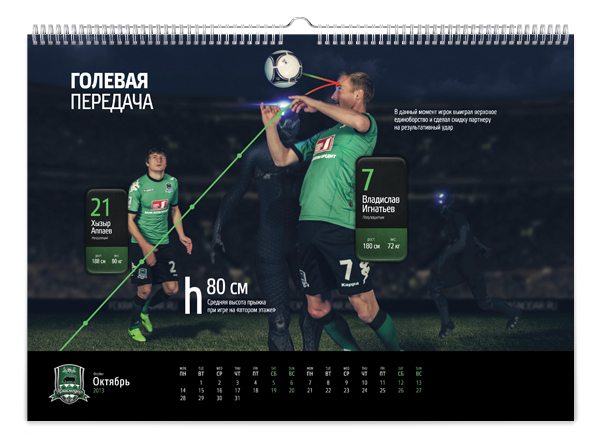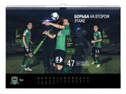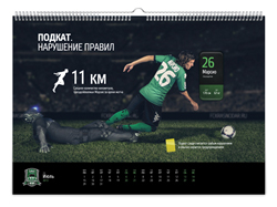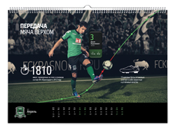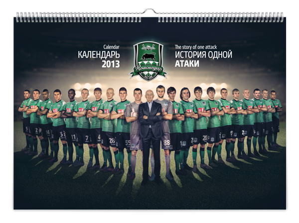 Краснодарская студия KEFIRМОЛОКО представила календарь для болельщиков футбольной команды «Краснодар». Клубный календарь называется «История одной атаки» и включает в себя 12 игровых моментов – начиная от ввода мяча в игру и заканчивая победным голом.
