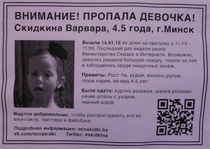 Белорусов возмутила реклама с «пропавшим» ребенкомМинская компания разместила объявления о пропаже Варвары Скидкиной