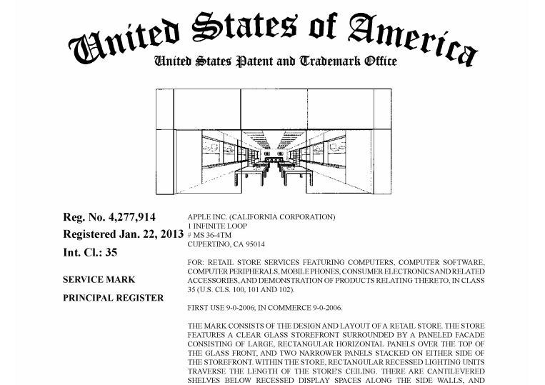 Apple запатентовала интерьер магазиновКомпания защитила дизайн Apple Stores от конкурентов Согласно документам, опубликованным порталом Ifoapplestore, свидетельство было выдано 22 января. Теперь дизайн и планировка Apple Stores имеют правовую защиту от копирования. Торговая марка включает в себя оформление стен, пола, размещение подсветки, расстановку и конструктивные особенности инвентаря, например, стеллажей и видеоэкранов. После первого отказа IT-корпорация провела исследование, чтобы доказать узнаваемость своих магазинов. Apple провела 180 интервью, и 43% опрошенных сразу опознали фирменный стиль компании. Большинство из них (53%) имели возраст 18–25 лет. Ключевыми признаками Apple Stores респонденты назвали большие окна, просторный интерьер, расположение столов, графичность стен. |