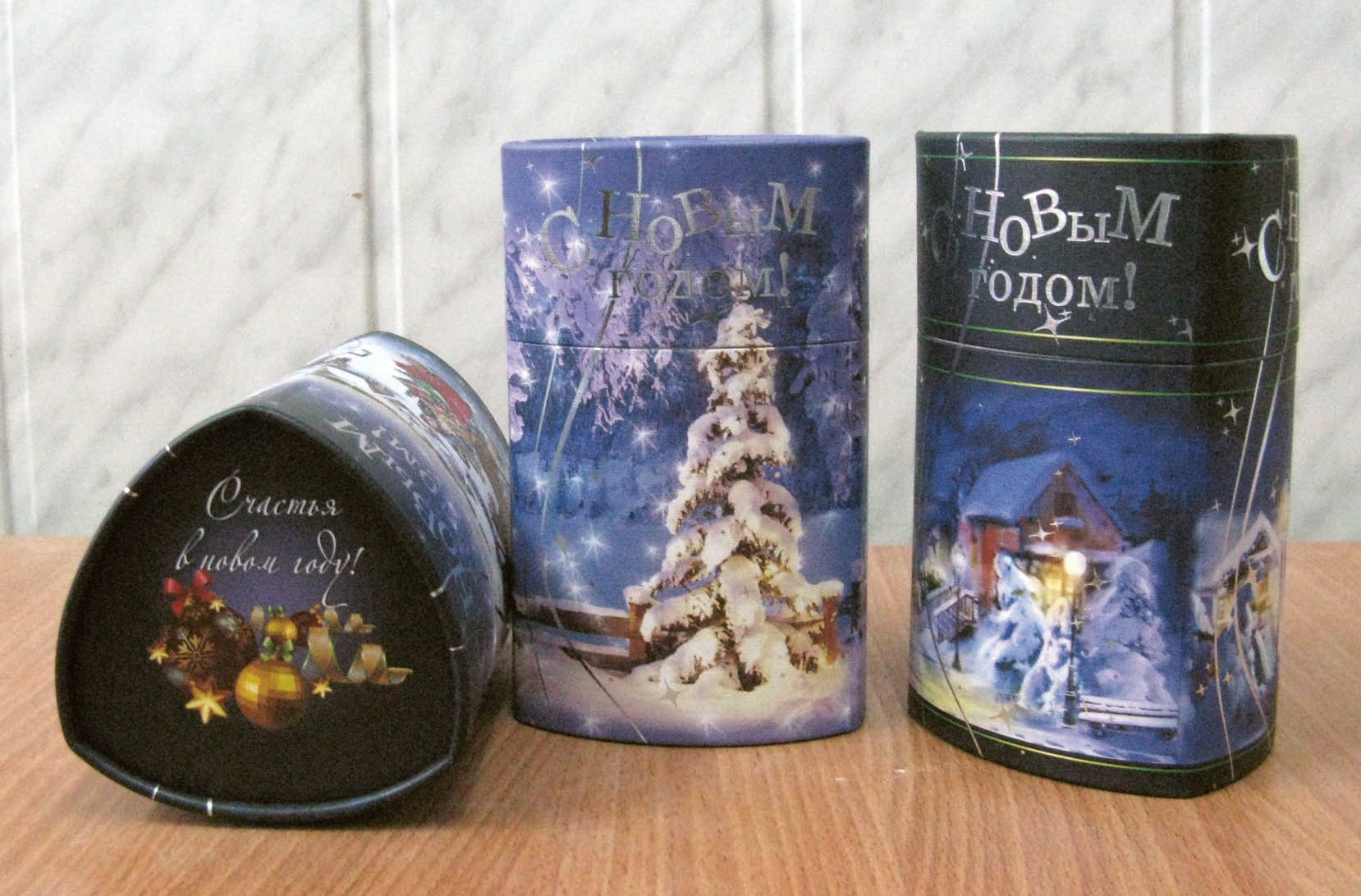 ЯСНОПОЛЯНСКАЯ ФАБРИКА ТАРЫ И УПАКОВКИ, Серия новогодних подарочных футляров треугольной формы