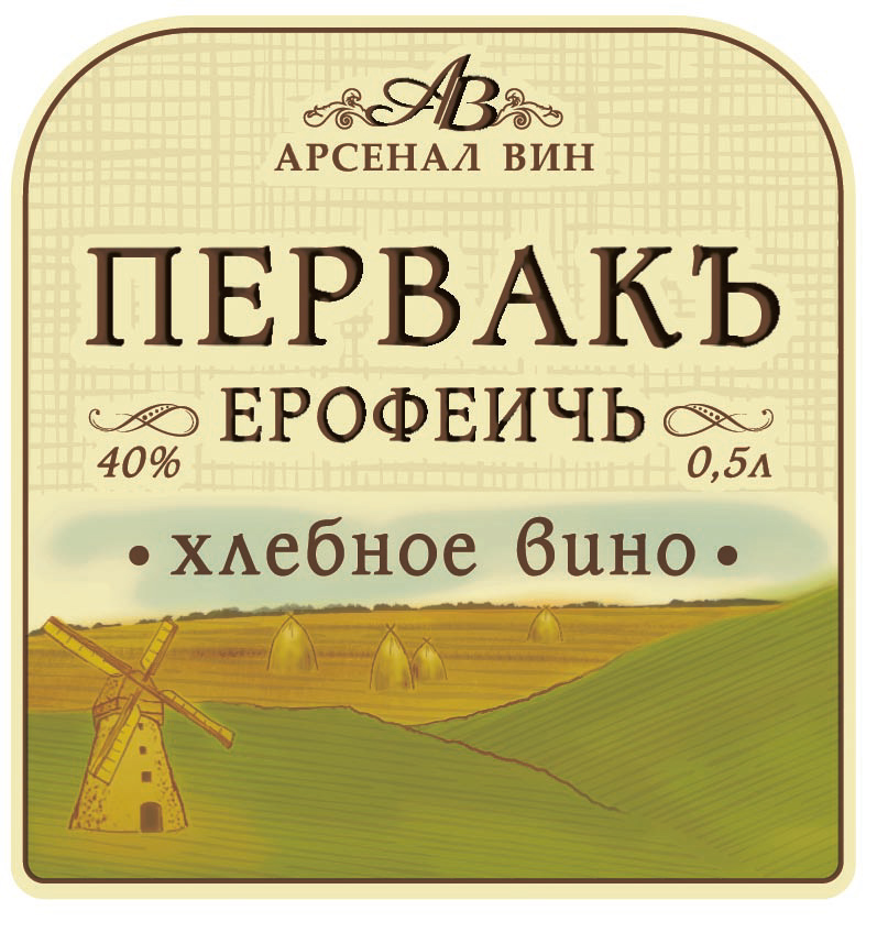АЛЯСКА-ПОЛИГРАФОФОРМЛЕНИЕ, Серия этикеток для водки «ПЕРВАКЪ ЕРОФЕИЧЬ»: «ЧИСТыЙ» И «ХЛЕБНОЕ ВИНО» |