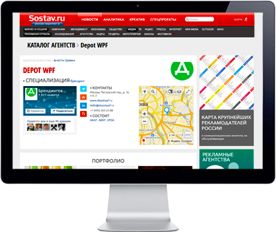 | Карточка агентства в каталоге | 1 год | Карточка Компании — унифицированный продукт, входящий в рекламную базу данных России и стран СНГ, включающий всю информацию о компании, ссылки на все публикации и проекты на Sostav.ru и других бизнес СМИ | 300 000 ₽ |