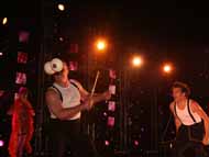 Еще пару замечаний. Микрофон Татьяны Арно с самого начала давал гудящий фон. Инстинктивно приходили в голову решения - перевести сигнал на другой канал пульта, либо поменять микрофон. Минутное дело, главное чтобы кто-нибудь принял об этом решение. Хотя, может в связи с многочисленностью музыкантов, каналов на пульте не хватало? Кстати, персонал сцены работал в обычной гражданской одежде - джинсы-рубашка. Обычно используется брендированная спецодежда. Майки с надписью МТС были бы им в самый раз.