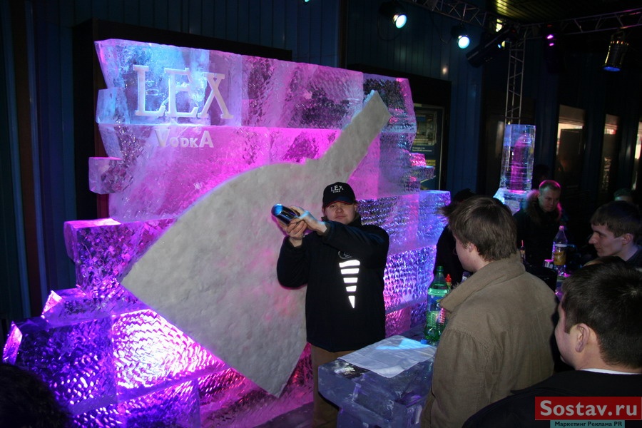 ТД "Немирофф" (Nemiroff), S=65 кв.м, ориентировочная стоимость застройки 12600 евро. Незамысловатое бар-шоу от Немирова (водка LEX). На морозе не пожонглируешь - руки/пальцы не сгибаются. Кристалл Гросс